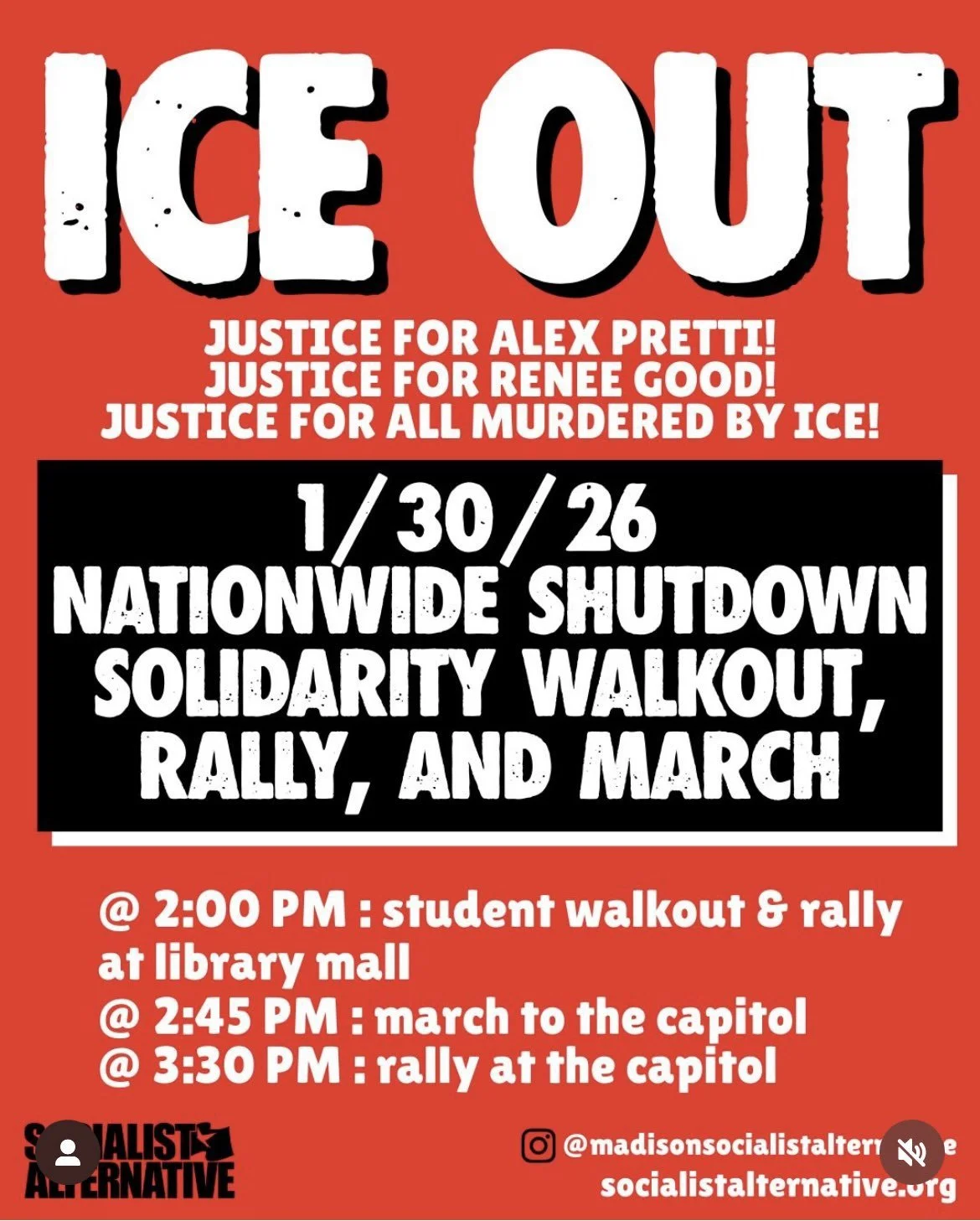 Hello! Sauk County Youth Resistance is back with our next event. This event peacefully condemns the Trump Administration and its aggressive and inhumane ICE tactics that resulted in the death of an innocent woman in Minneapolis earlier this month. It’s up to us to say no more of this, and we highly hope you’ll join us!