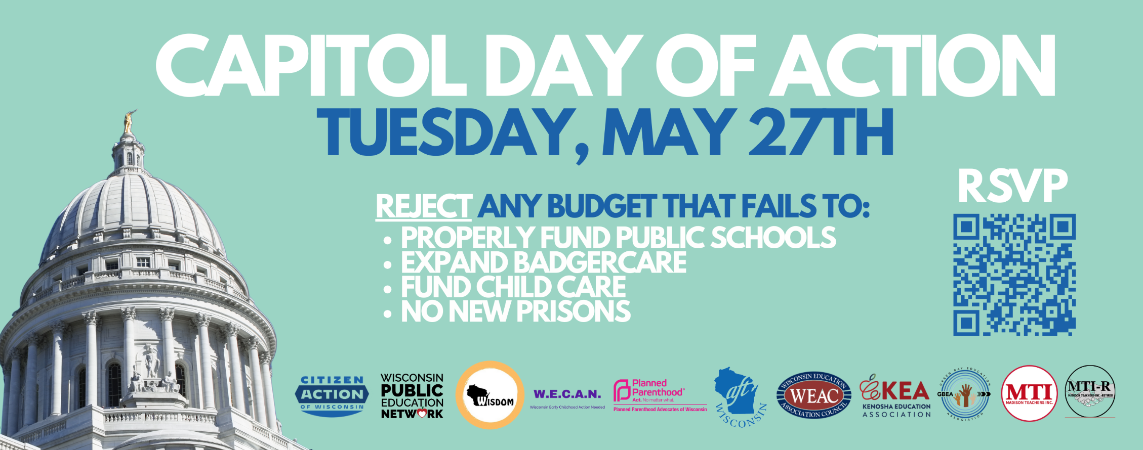 On Tuesday, May 27, WISDOM will join with Citizen Action of Wisconsin, the Wisconsin Public Education Network and others to demand a State Budget that meets Wisconsin's needs and the priorities of Wisconsinites.